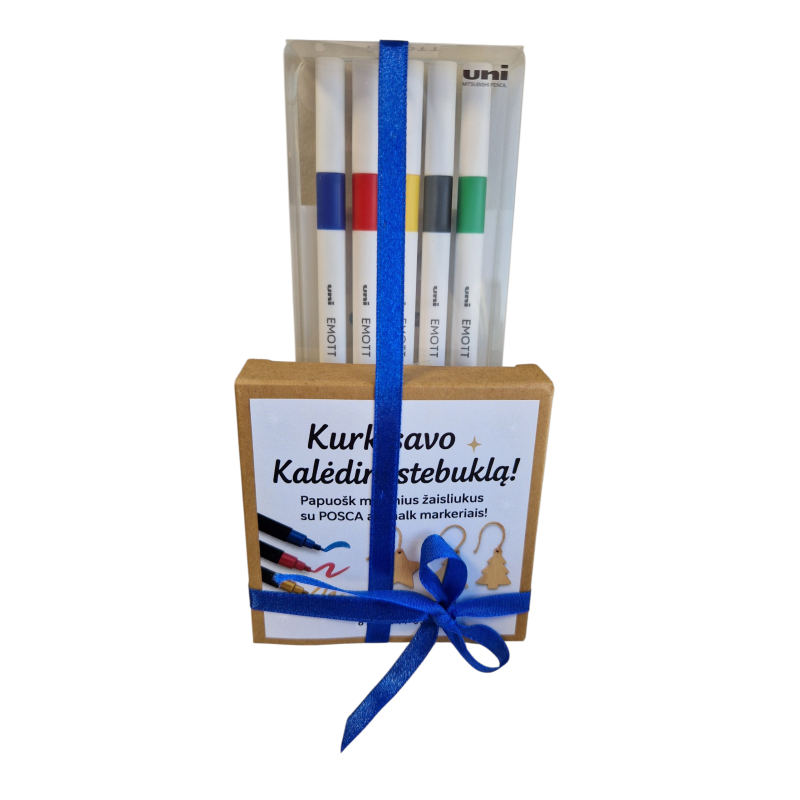 Šis kalėdinis kūrybinis rinkinys suteikia galimybę sukurti unikalius ir išskirtinius eglutės papuošimus. Rinkinyje yra 6 įvairių formų mediniai žaisliukai, kuriuos galite dekoruoti pagal savo kūrybines idėjas. Komplekte esantys 5 UNI EMOTT rašikliai pasižymi minimalistiniu dizainu, ryškiomis spalvomis ir itin tiksliu 0,4 mm galiuku, leidžiančiu piešti švarias ir tvarkingos linijas. Rašikliai puikiai tinka tiek piešimui, tiek rašymui ant įvairių paviršių. Smagus, raminantis ir kūrybiškas užsiėmimas vaikams ir suaugusiems švenčių laikotarpiu.