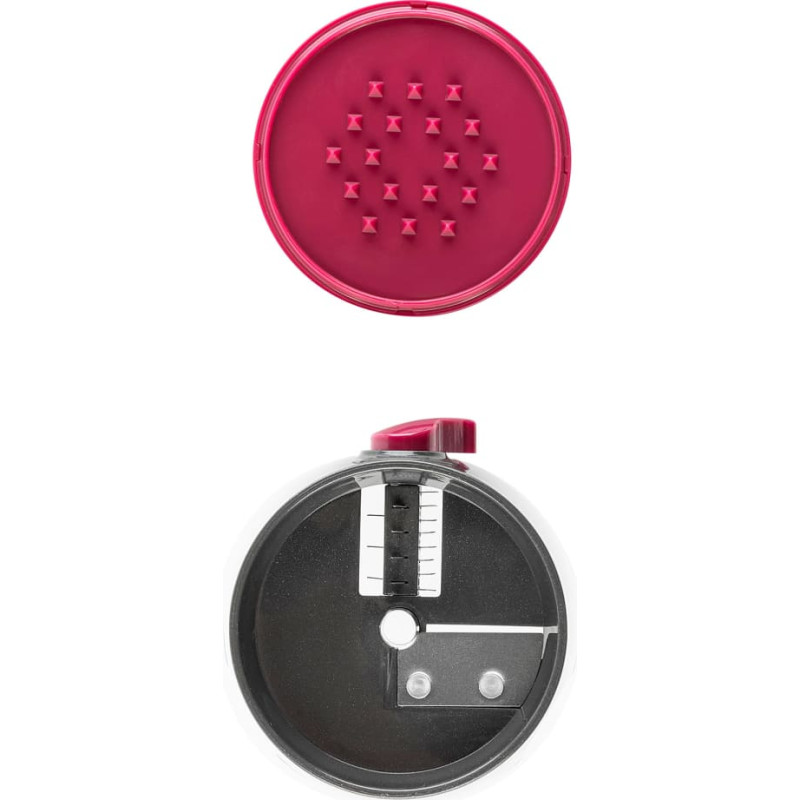 Rankinė sukamoji svirtis įvairiems pjūviams atlikti. Idealiai tinka vaisiams ir daržovėms. Neslystanti rankena. 4 nerūdijančio plieno peiliukai. Kompaktiškas ir patogus laikyti. Be BPA. Suderinamas su FDA ir LFGB. Matmenys: 11 x 9,2 x 7,5 cm