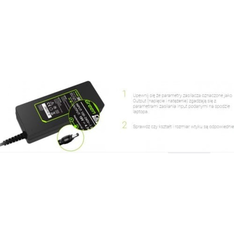 Green Cell AD07AP Charger AC Adapter for Dell 19.5V 3.34A 65W / 7.4mm-5.0mm